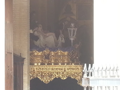 tal y como estuvimos hablando unos dias antes de salir hacia Sevilla, cuando estabamos planeando el viaje y consultabamos las predicciones meteorológicas: Prefiero ver llover en Sevilla.... porque aunque el dia no fue del todo fructuoso, ya que nosotros a lo que vamos es a ver la grandeza de las hermandades y los pasos en la calle, sí que fue muy agradable y constructivo el poder presenciarlos en sus capillas, con ese ambiente, y disfrutar de largas charlas y tertulias sobre nuestras cosillas.