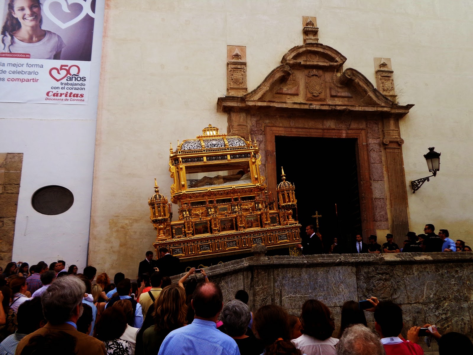 Aunque el encanto es más soberbio cuando pasa por donde pasa, cuando nuevamente en Blanco Belmonte me lo dejé, necesitando refrescar el sofocante calor en la barra del Anticuario del maestro y a las puertas de la catedral, la magnificencia parecía brotar por las apreturas de Deanes. Nuevamente a la “casita” del Dios de la Compañía, a su galeón para entrar en su casa bendita, esa que levantaron los moros y que ahora es epicentro del cristianismo en la ciudad. Visualizando el video que les adjunto he disfrutado de lo que llevo dos sintiendo y no poder verlo. Si alguien me pregunta si he ido recientemente a la mezquita, tendría que decirle que sí, que dos veces en los dos últimos años pero que ver no vi nada, solo sentir el mármol de la casa del Padre. Por el embriagador patio bajaba el retablo errante sorteando los desniveles, quizás por eso es un poco raro el andar hasta que entra y gracias al video por fin me he enterado que es lo que se desarrolla. Entrado hasta el fondo, donde ahí se me ponen los pelos de punta al contemplar con que poderío camina la urna, no me extrañaría que el Señor más que estar en los infiernos, estaría ya soñando dulces sueños en el paraíso que a eso de las doce de la noche volvería abrirnos, casi dos mil años después, un año más. El eco del son en el mármol, las órdenes, allí se me hizo más corto de lo que se vislumbra en la grabación. Los nazarenos rodean las naves del templo y los pasos se quedan al fondo, cuando llega el paliazo del Desconsuelo, a las órdenes de Curro y de Ángel Muñoz, otra gran persona dentro del grupo humano que mueve el discípulo cordobés de Manolo Santiago. Es especial esto, merece muchísimo la pena hacer estación de penitencia, si se puede en una cofradía, porque una estación solo será cuando se estacione, a algún templo, lo demás siempre será una simple procesión. Los sentimientos que volví a vivir llenan del misticismo, de la espiritualidad cargado de kilos hasta arriba mientras escuchaba la voz del cura que cada año nos da la charla en el primer ensayo, supongo que será el párroco de la Compañía, ese que este año dijo algo que me marcó y que deseo que dijeran todos los curas del mundo… “no valoraré el qué os mueve a venir aquí, pero lleváis el evangelio a las calles, en tiempos difíciles para ello, hacéis entonces un servicio a Él y su iglesia y eso hay que agradecerlo…” creo que con esta filosofía, las iglesias estarían más llenas.