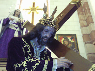 Hace poco he contemplado como “neocostumbristas” granadinos parecen que han olvidado que es hoy su Semana Santa desde los ochenta cuando la idiosincrasia cofradiera sevillana se plantó a las faldas de la Alhambra. A mí me resulta curioso como gracias a esto hoy exista cultura cofradiera en la ciudad, o que las cofradías están de moda por decirlo de una forma más clara, a la vez esos cultos pareciesen querer negar todo lo bueno –tal vez por culpa de lo malo- que Sevilla o llamémosle “la sevillanización” insufló a la grandiosa Granada. El Cristo de los Favores es una portentosa obra de la vieja escuela local que se asienta sobre un canasto del canon hispalense y se mueve como en Sevilla y a costal y la música que marca su triste caminar es igualmente la salida de la esencia sevillana en sus dos grandes vertientes.